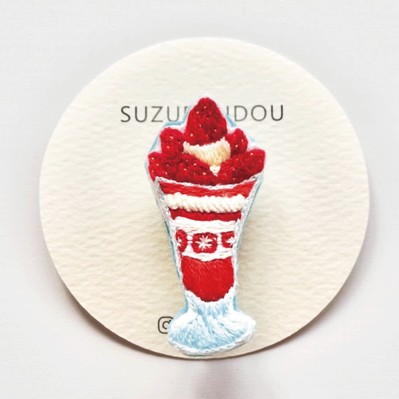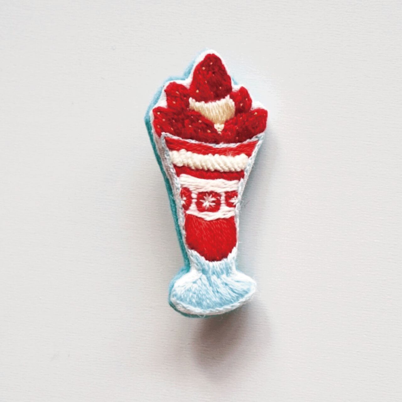 【SUZURANDOU】いちごパフェの手刺繍ブローチ